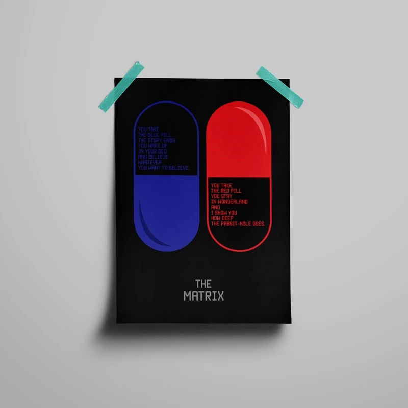 - 🎥 Iconic Design: Features the legendary red and blue pill imagery with the iconic quote from The Matrix.